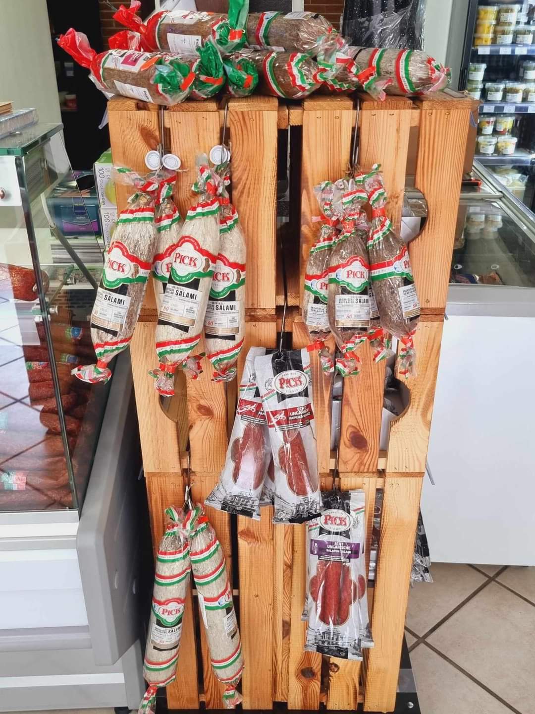 Aus Hirsch- und Mangalicafleisch, und aus Schweinespeck hergestellt, pikant, geräuchert.